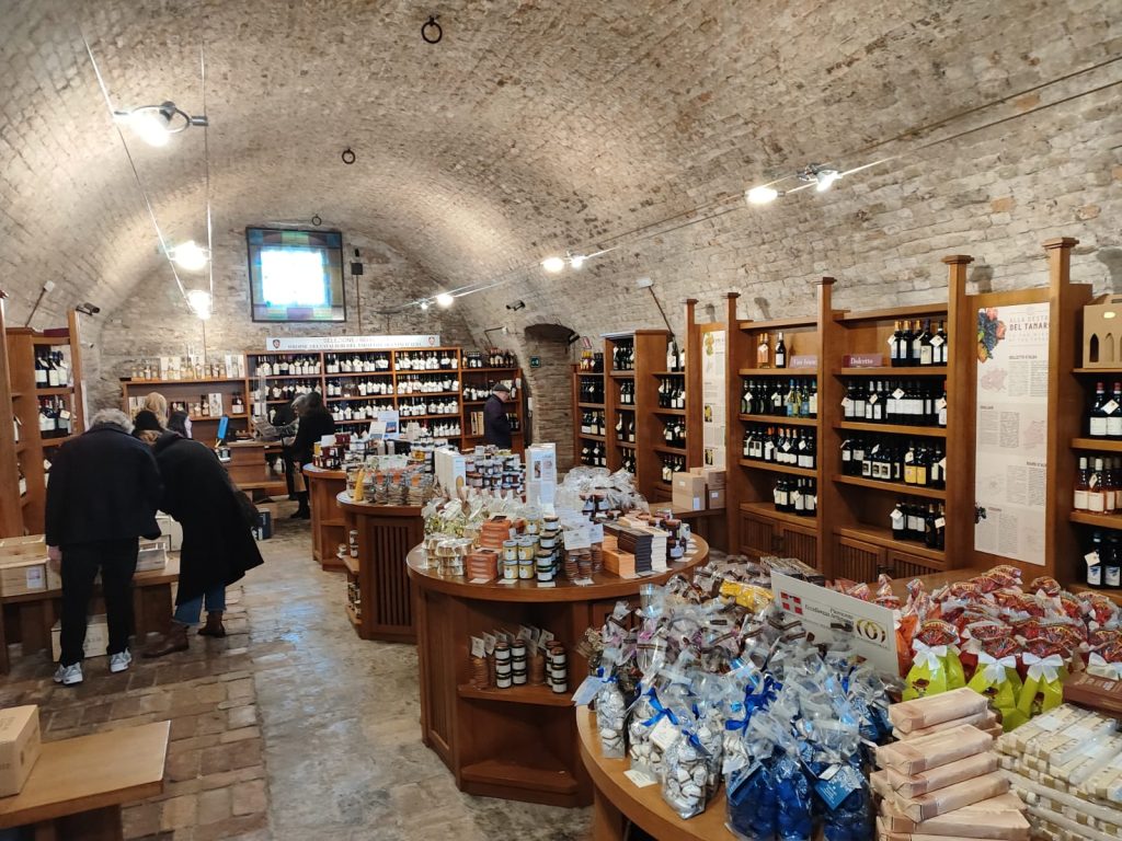Alla fine del percorso, una enoteca ben fornita consente di acquistare diversi tipi di vini della regione con denominazione di origine controllata, oltre a prodotti classici della gastronomia italiana.