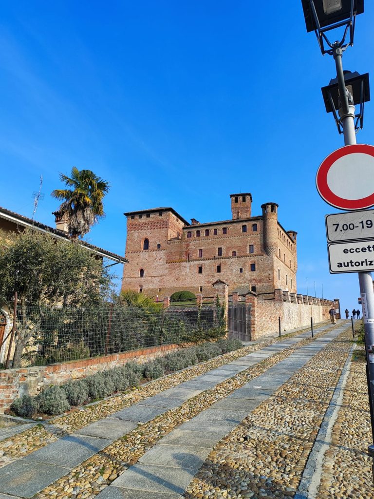 El trayecto en automóvil de cincuenta minutos de Grazzano Badoglio a Grinzane Cavour permite ir descubriendo las variadas siluetas de las colinas donde la mano del hombre ha logrado cuadricular el terreno con vides que son la base de los mejores vinos de Italia. Ya a pocos kilómetros de la meta se asciende hacia la colina en donde un castillo, perfectamente conservado, domina el panorama.