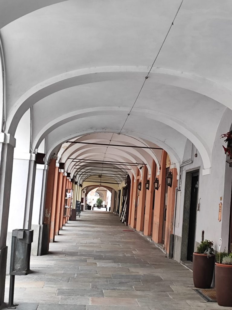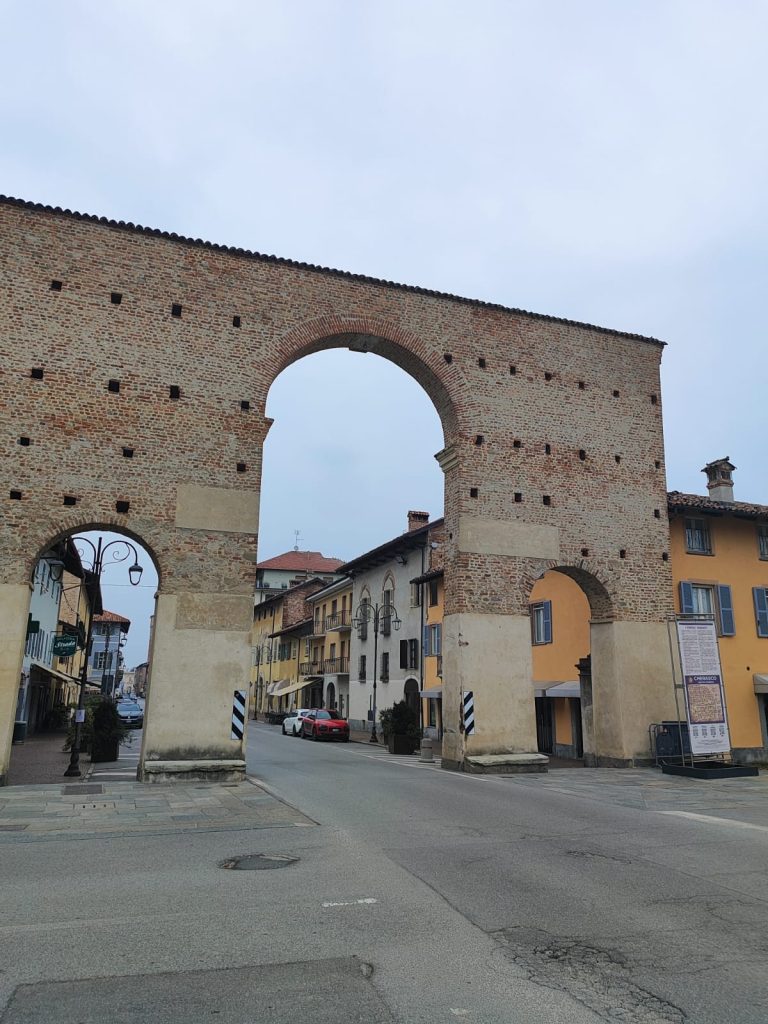 Anche Cherasco merita una menzione. Abbiamo lasciato l’auto in un parcheggio prima di attraversare gli archi della città antica. Una via ampia e accogliente inizia con un arco e termina con un altro alla fine del percorso. È vivace, con una sua anima, caffè e ristoranti, e bei portici.