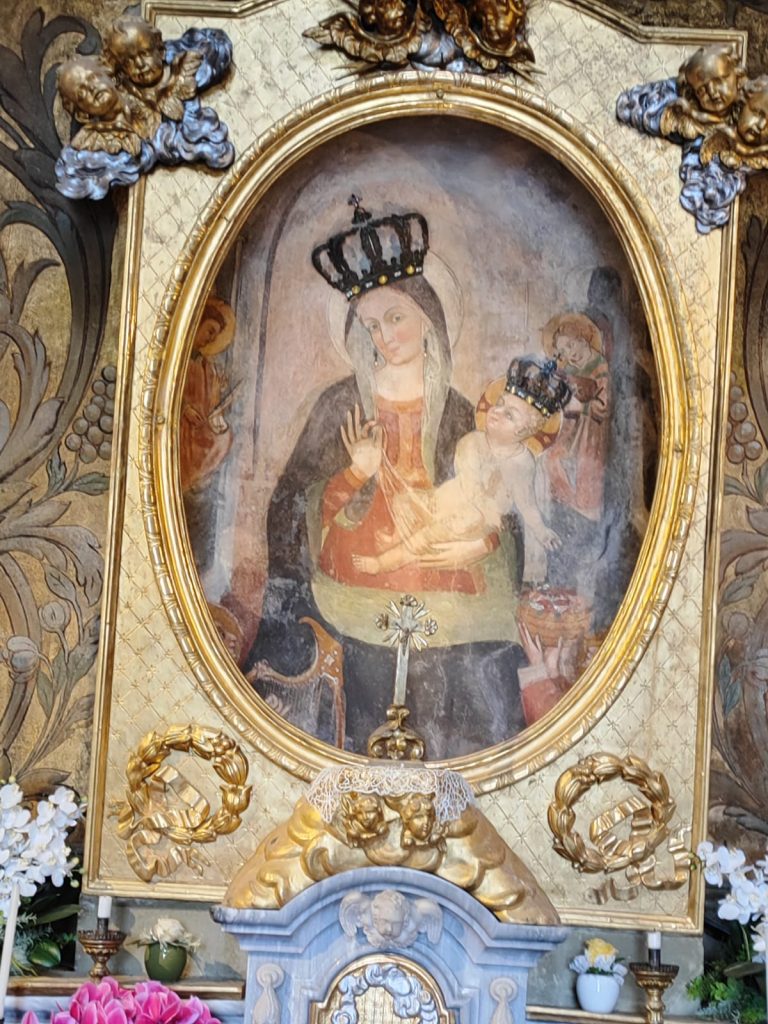 Abbiamo passeggiato lungo la via principale e infine siamo entrati nella Cappella con l’immagine della Madonna delle Grazie, a cui i fedeli si rivolgono per richieste speciali, con testimonianze leggibili in alcuni documenti esposti.